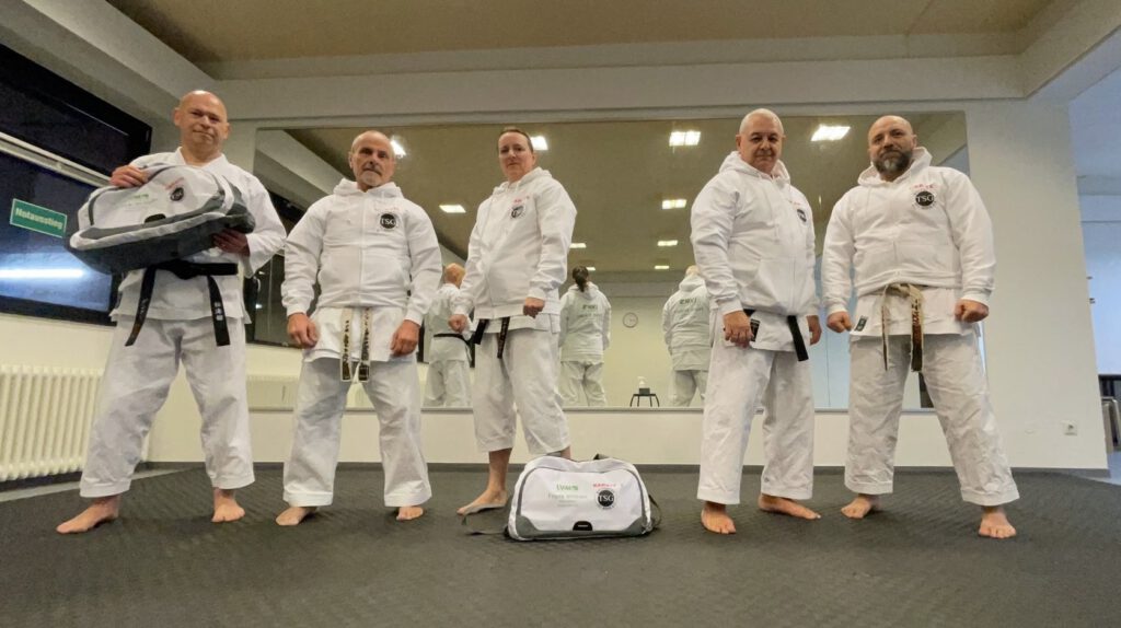 Als Sandra 2005 mit dem Karate Sport anfing, konnte sie noch nicht ahnen, dass sie am Nikolaustag 2025 die Prüfung zum Schwarzgurt 1. Dan bestehen würde. Man könnte meinen, es wäre ein Geschenk, welches sie ihren Schuhen entnehmen müsste, weit gefehlt. Es standen jahrelanges Training und viele Lehrgänge auf dem Weg zur Prüfung an. Einmal die Woche ging es auf die Autobahn nach Göttingen, wo der spätere Prüfer sich die nächsten Prüflinge schon einmal ansehen konnte, die anderen Tage trainierte sie bei uns im Dojo der TSG Mörse. Viel Zeit musste Sandra investieren, und alles „nur“ für den schwarzen Gürtel. Am 6. Dezember war es dann soweit, unter den Augen des Prüfers zeigte Sandra ihm die Techniken, die er sehen wollte. Und da diese gar nicht schlecht waren, sondern sehr gut, ging sie als glückliche Schwarzgurtträgerin aus der Halle. Nun kommt es ja nicht oft vor, dass Ehefrau und Ehemann die gleiche Graduierung haben. Bei der Familie Herbst ist es jetzt soweit. Herzlichen Glückwunsch Sandra!